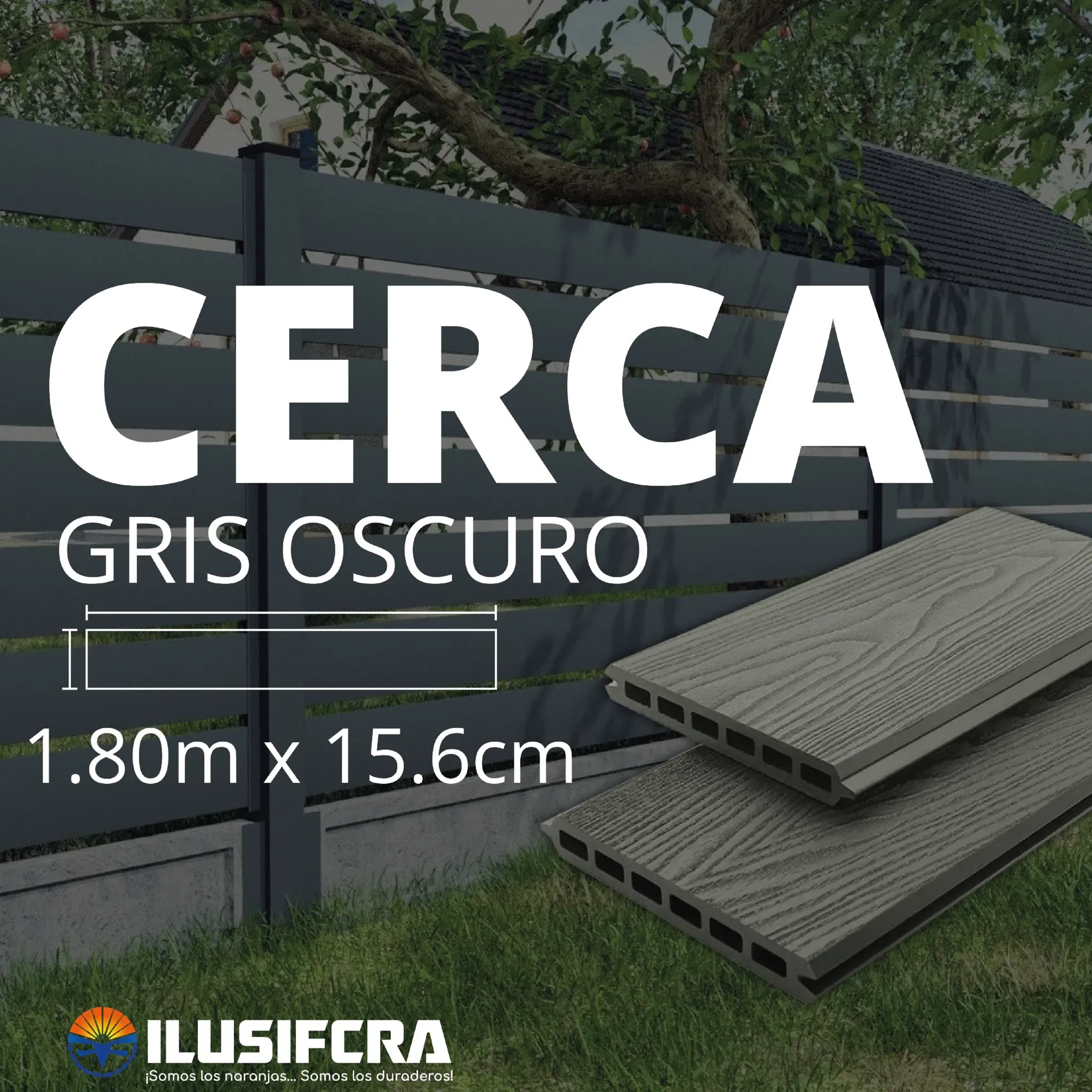 CERCA PERIMETRAL FEENCING WPC GRIS OSCURO 15.6CM X 1.80M