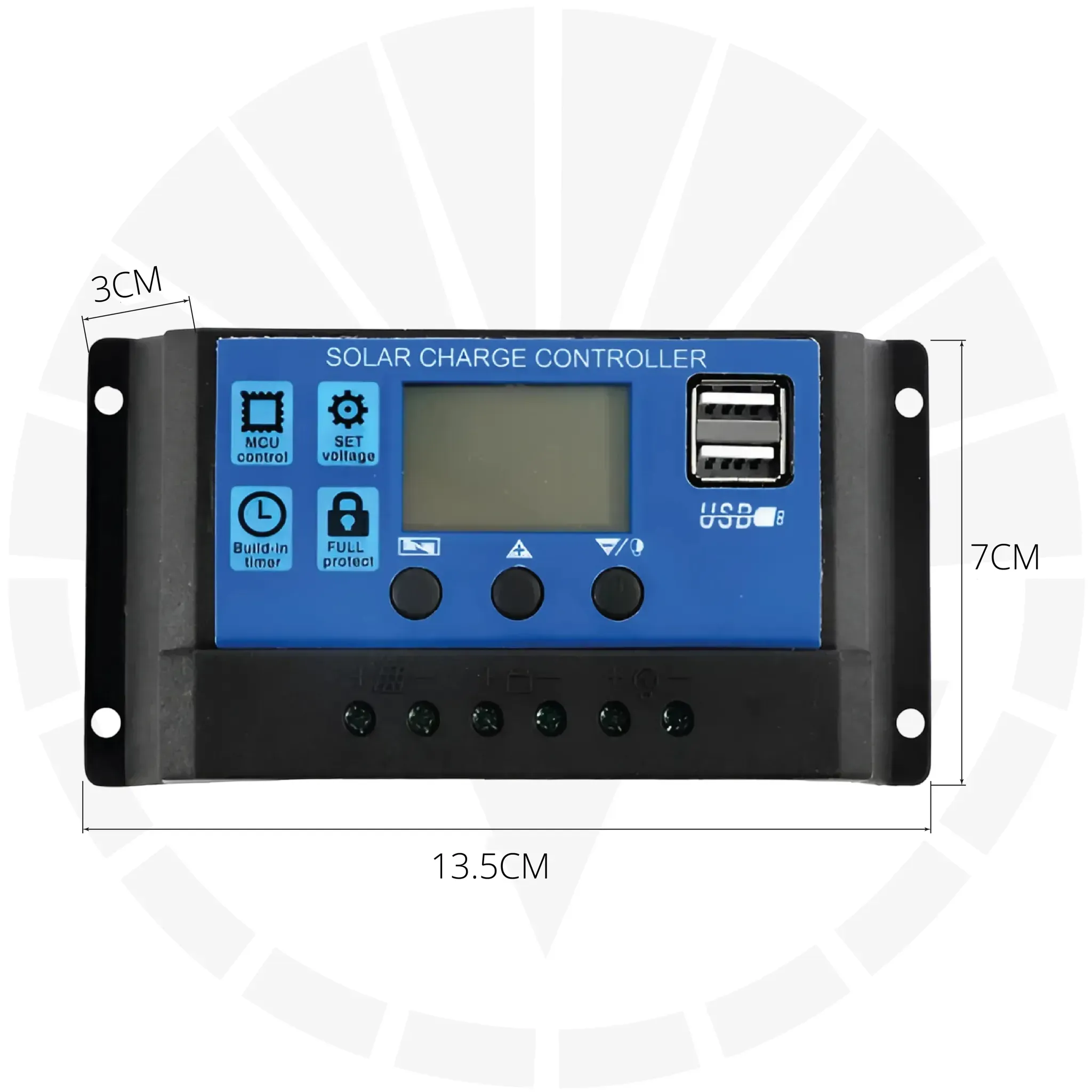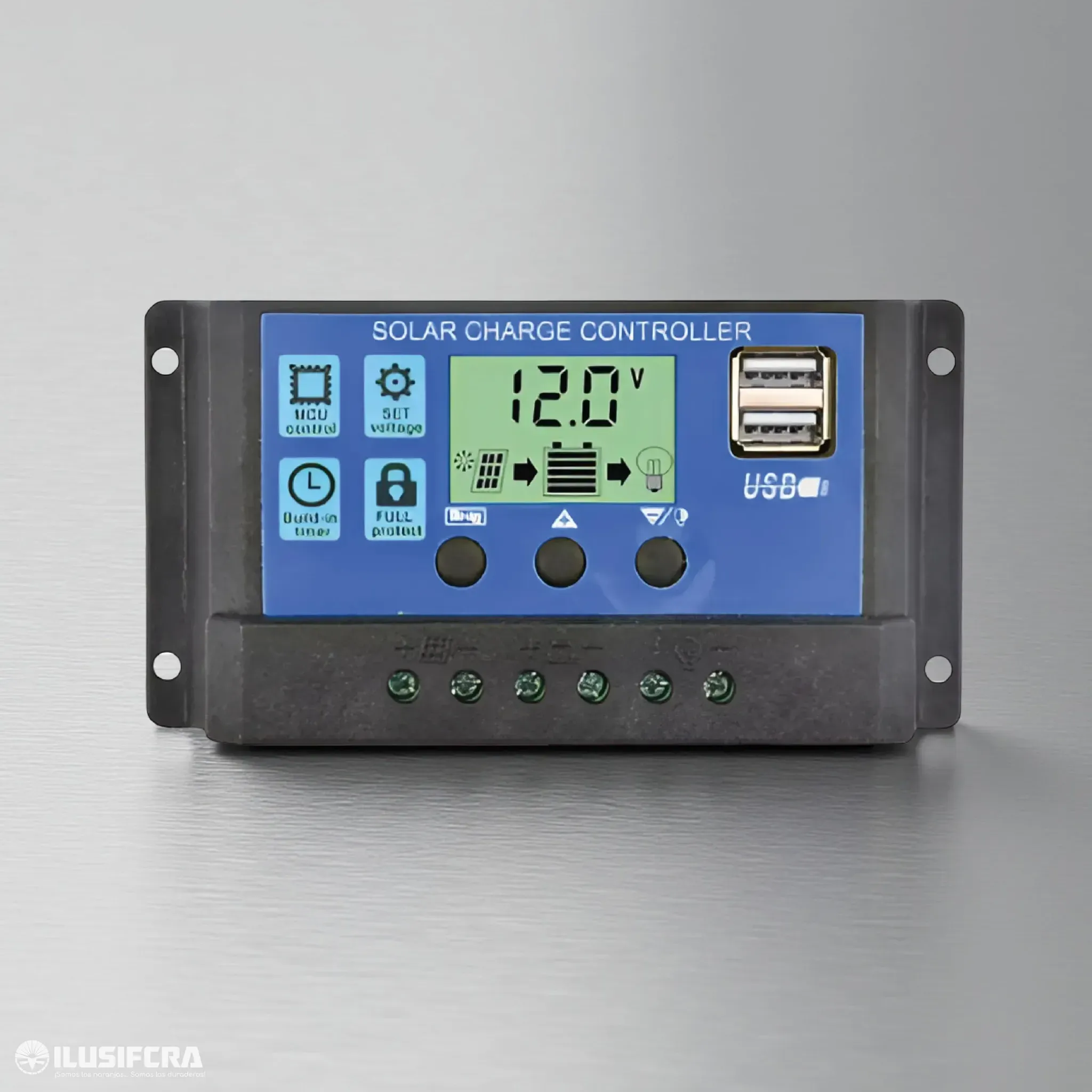 El Controlador Carga 20A PWM 12V-24V LCD está preparado para poderse utilizar en instalaciones solares pequeñas. Este controlador de carga se caracteriza por incorporar una pantalla LCD que permite visualizar y monitorizar todos los parámetros de la instalación solar. En resumen, es un controlador d...