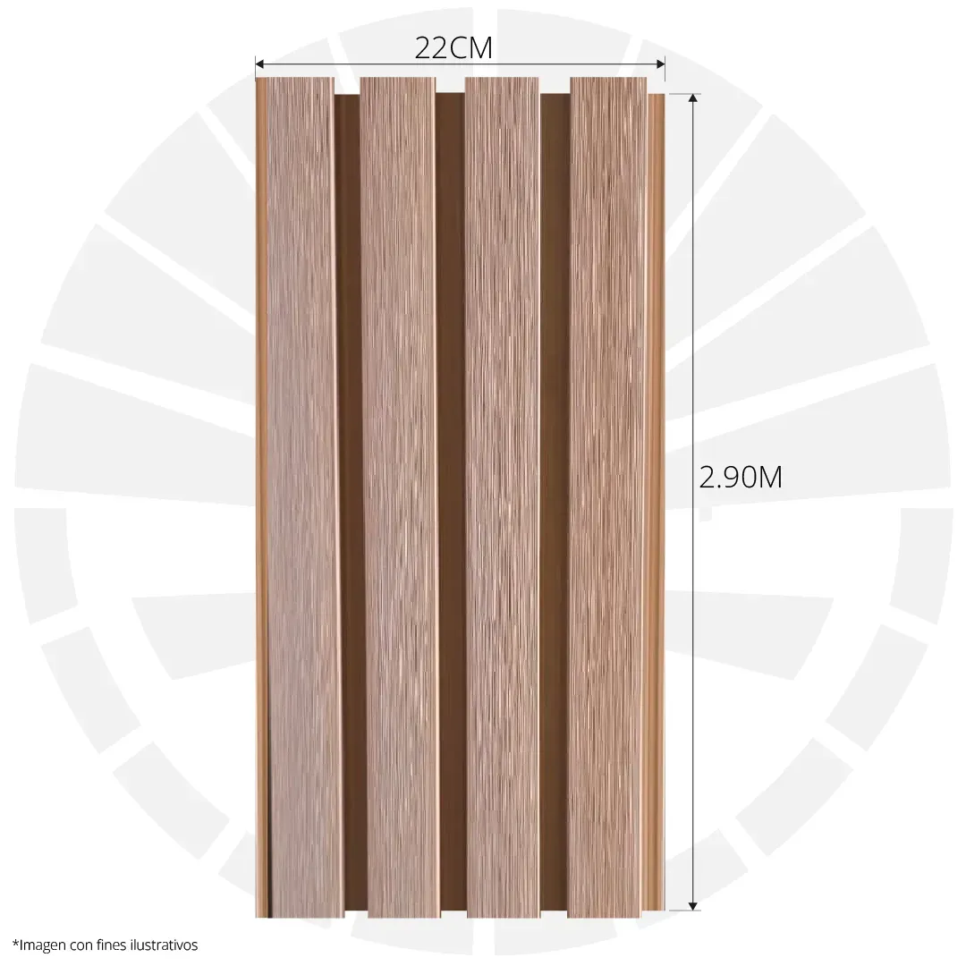 Nuestro lambrín para exterior en color beige está fabricado mediante tecnología de co-extrusión, que combina una capa protectora con un núcleo compuesto por 60% resina de madera y 40% polímero HDPE de alta densidad.