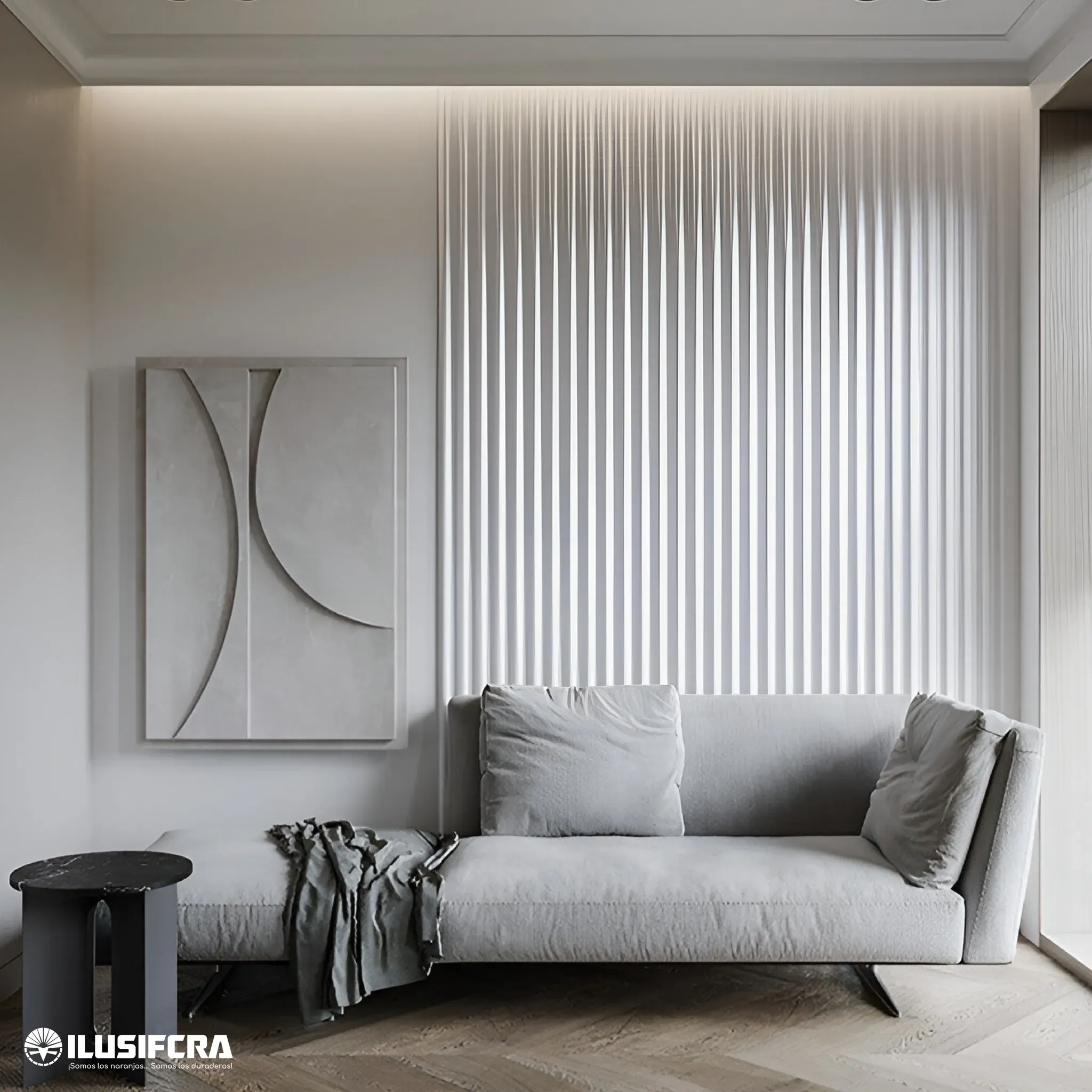 El panel WPC para interiores está compuesto por un 60% de resina de madera y un 40% de PVC, y está acabado con un revestimiento de alta calidad que ofrece texturas realistas y colores sólidos para adaptarse a cualquier estilo de decoración.