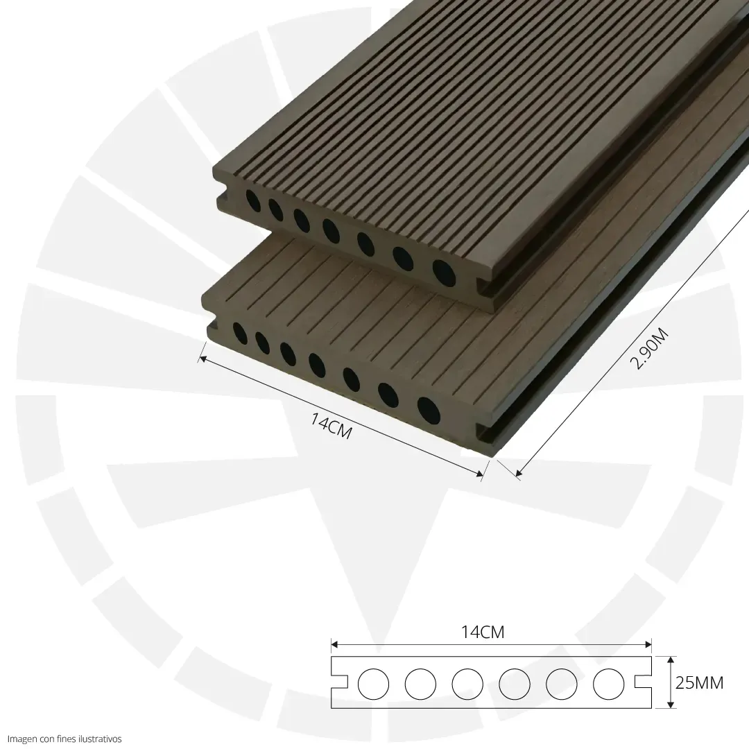 LÁMINA PARA PISO ESTILO DECK WPC ACABADO ROBLE OSCURO 14CM X 25MM X 2.90M