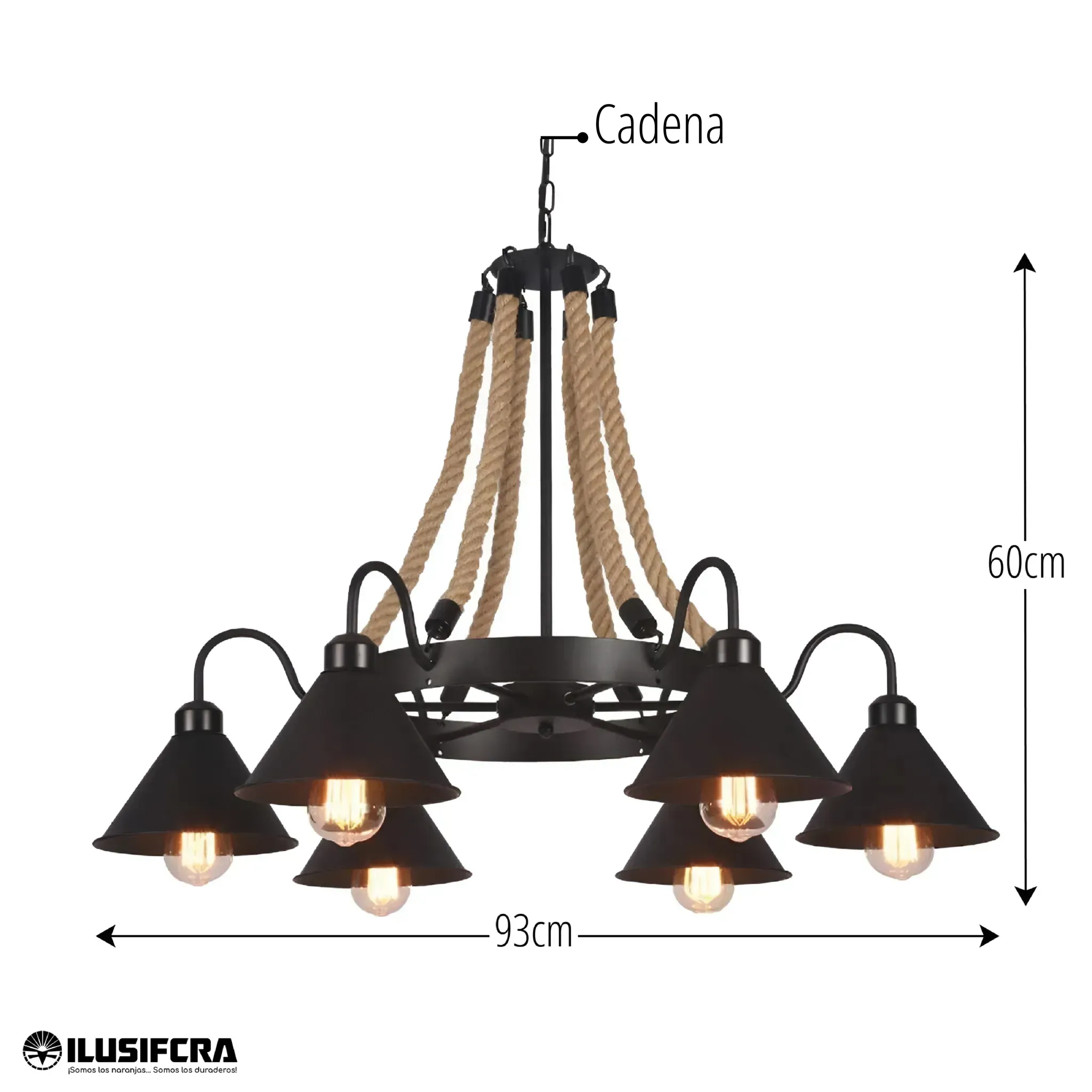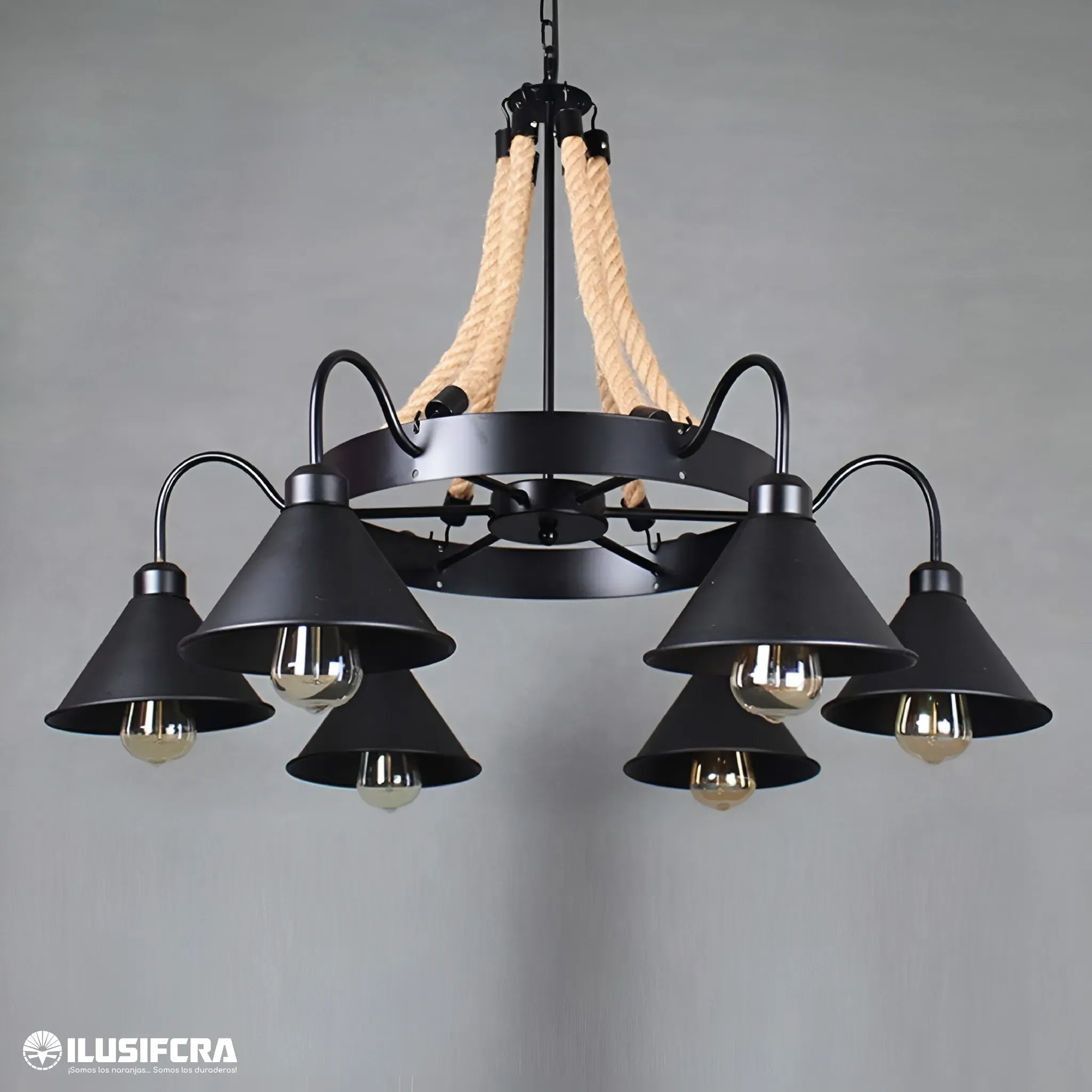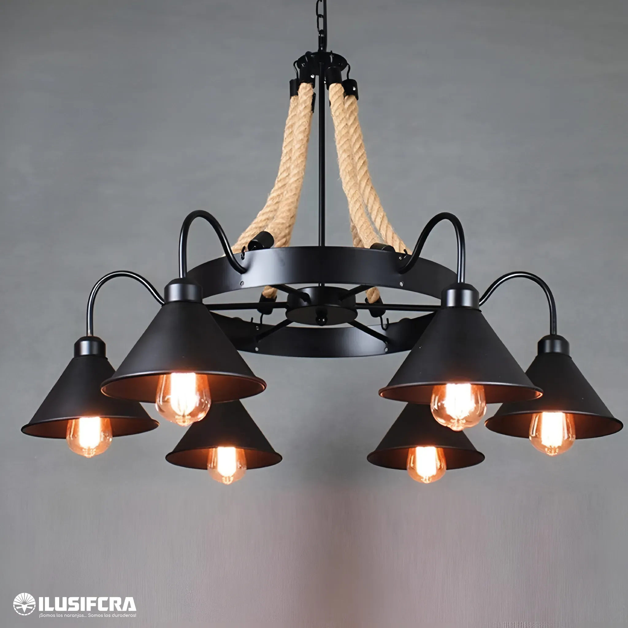 LAMPARA COLGANTE 6 COPAS TIPO CARRETA RUSTICA M7005-6