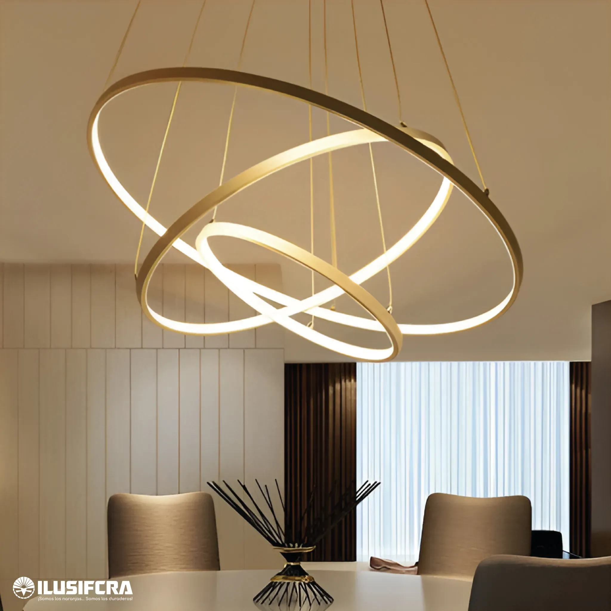 LAMPARA COLGAR 8005-3 / 8003-3 40+60+80 3 AROS DORADOS