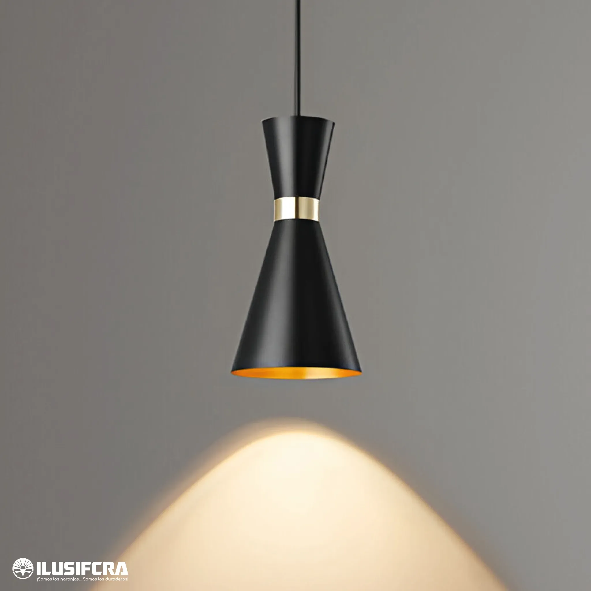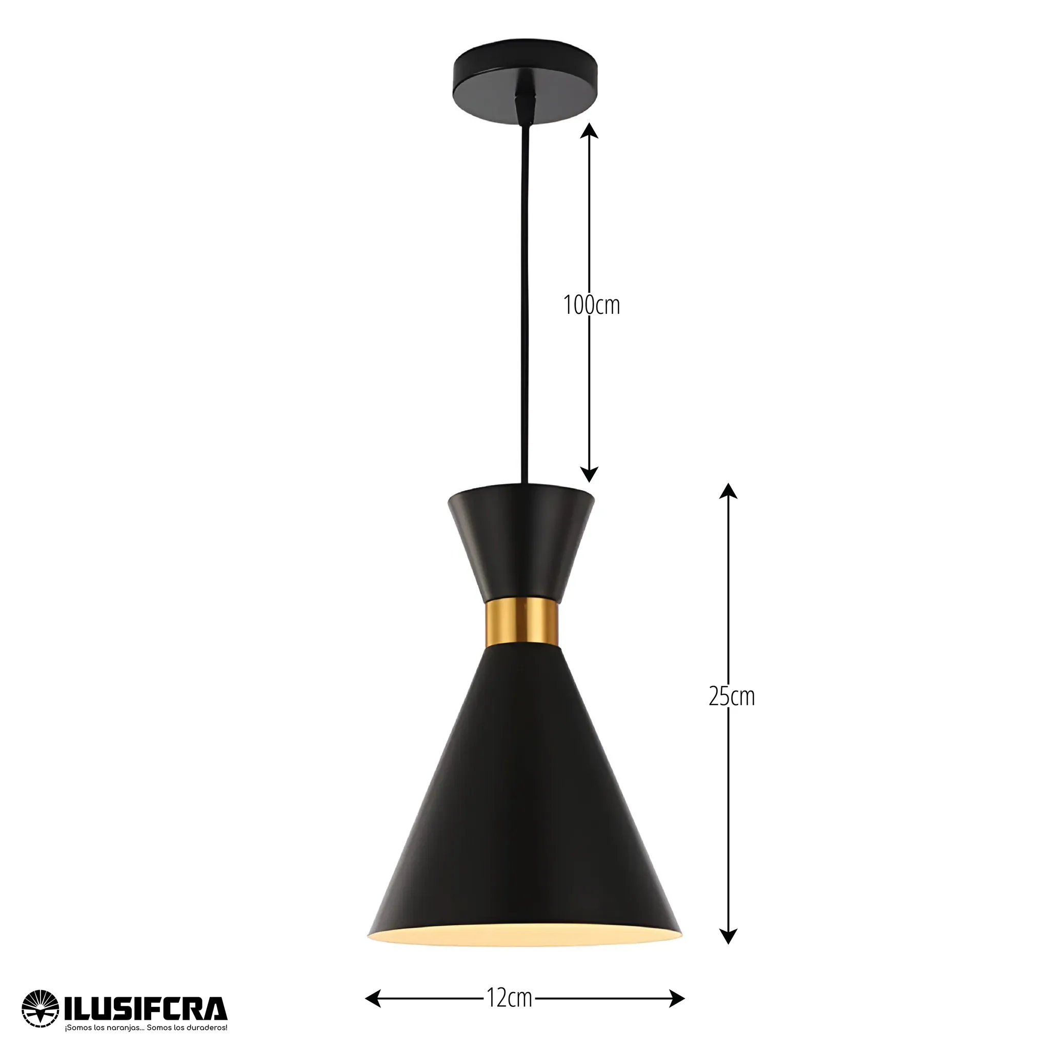 LÁMPARA DE COLGAR CONO PEQUEÑO NEGRO CON DETALLE DORADO DT-003
