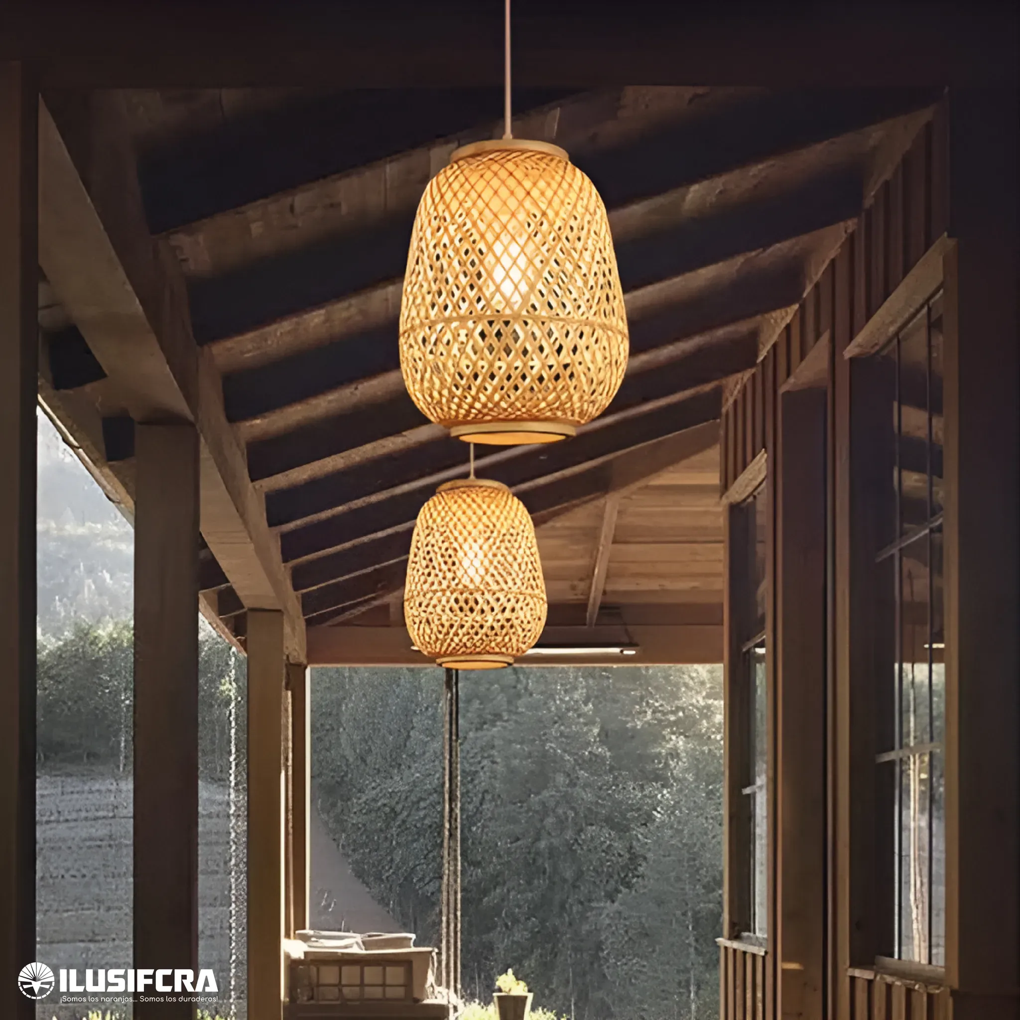 LÁMPARA DE COLGAR MIMBRE ESTILO COPA 3611