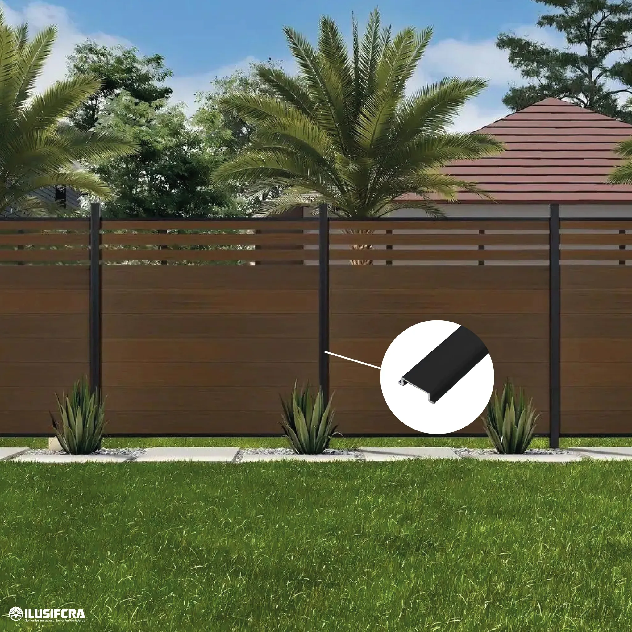 PERFIL EN ALUMINIO LATERAL PARA CERCA PERIMETRAL FENCING NEGRO TIPO U "1" 1.85M