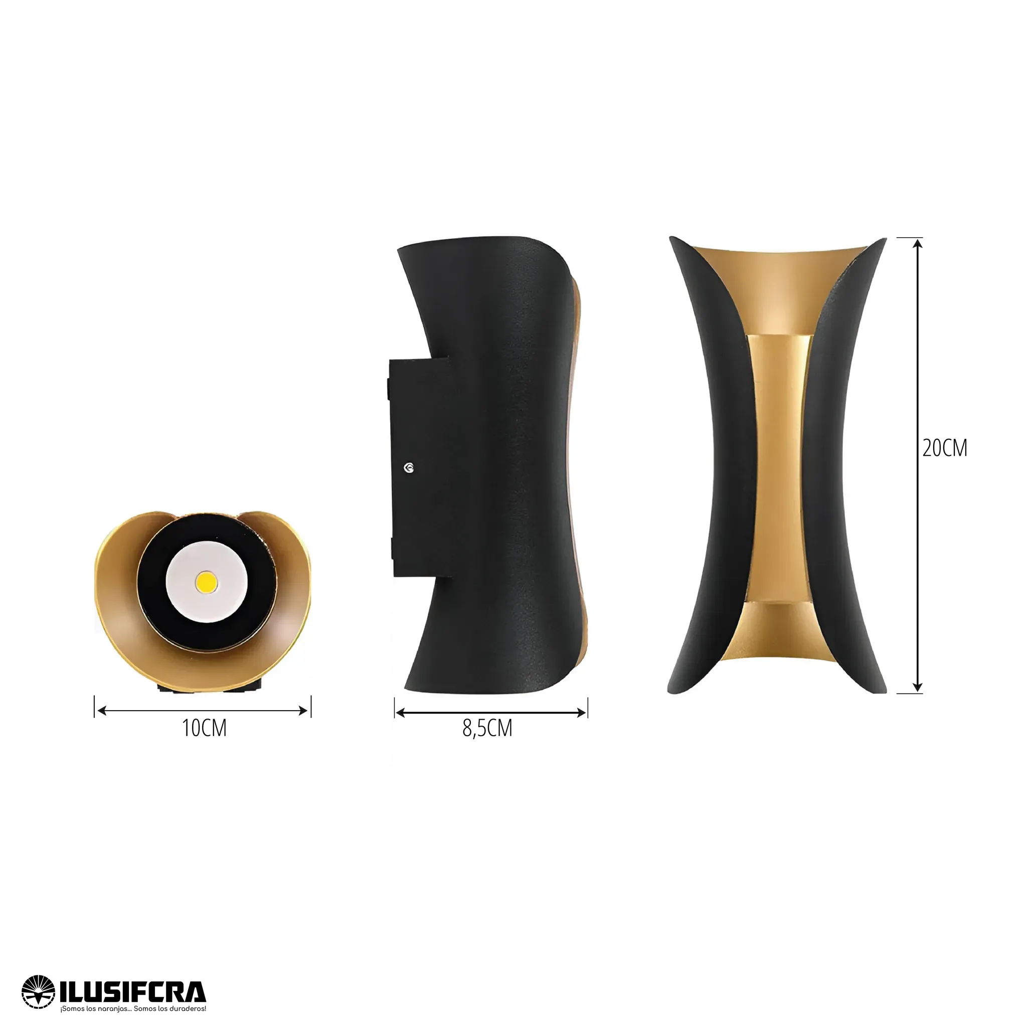 APLIQUE LED PARA PARED 2 LUCES OS-W23-10W BK+GD 8990