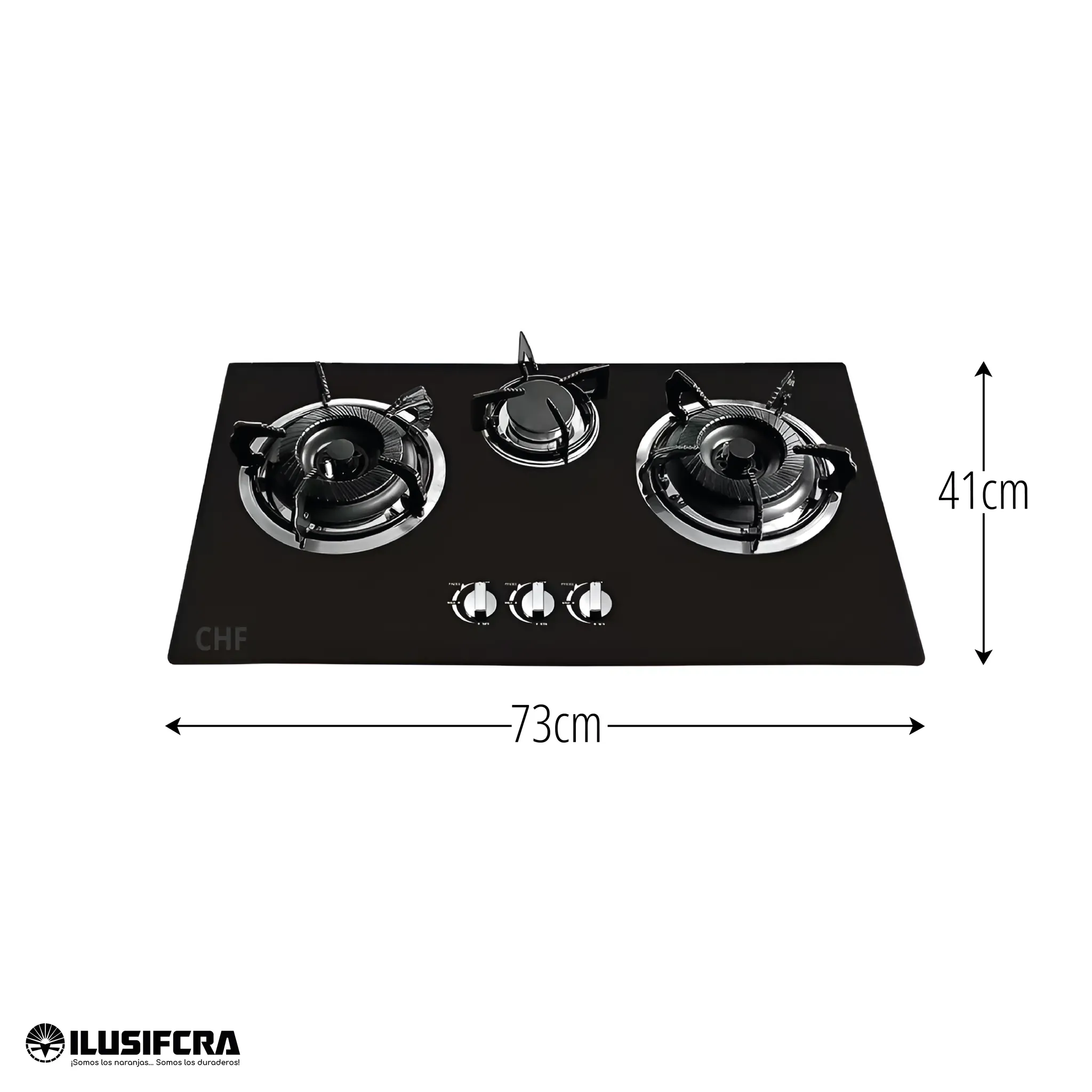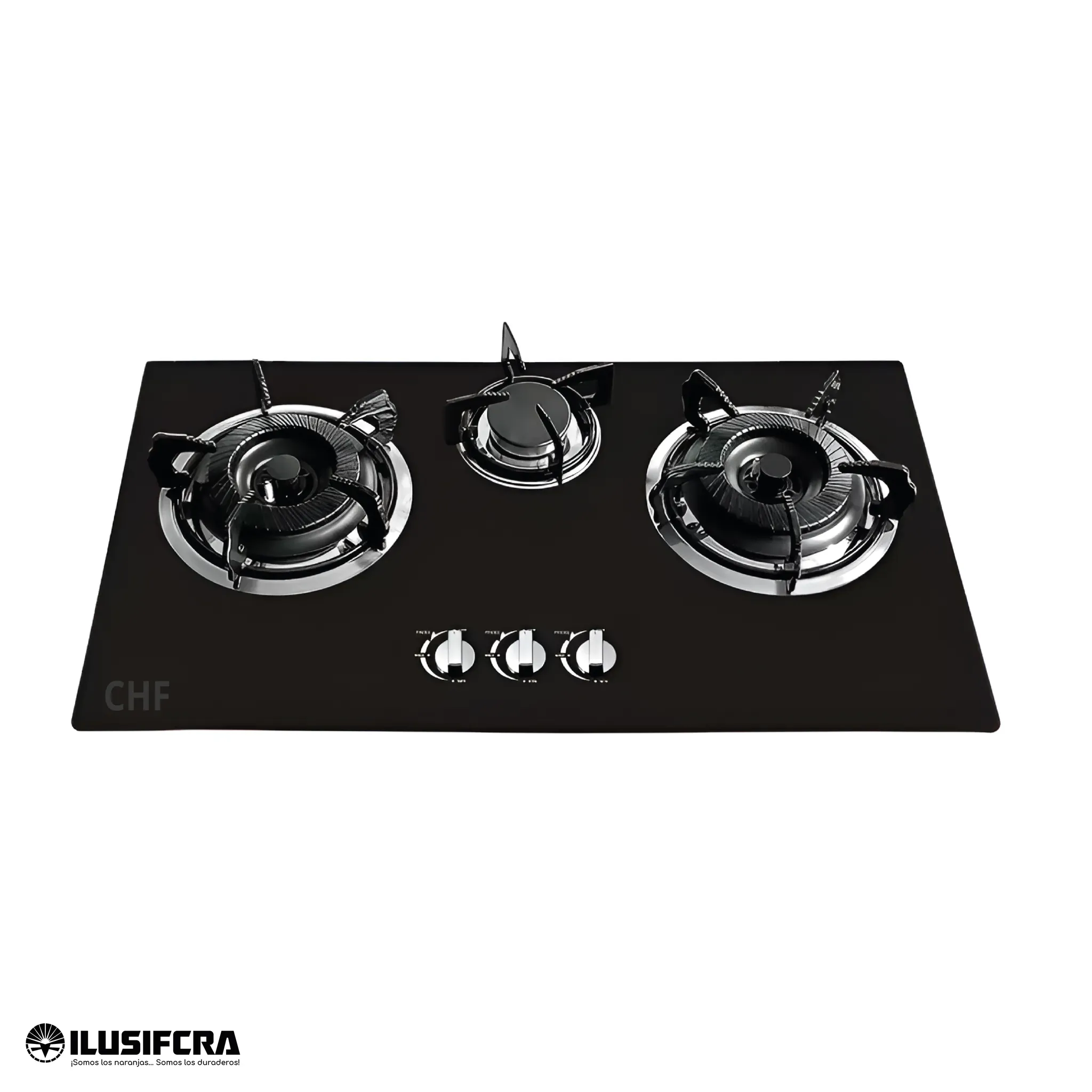 COCINA DE GAS 3 QUEMADORES RECTANGULAR VITROCERAMICA CHF 0011