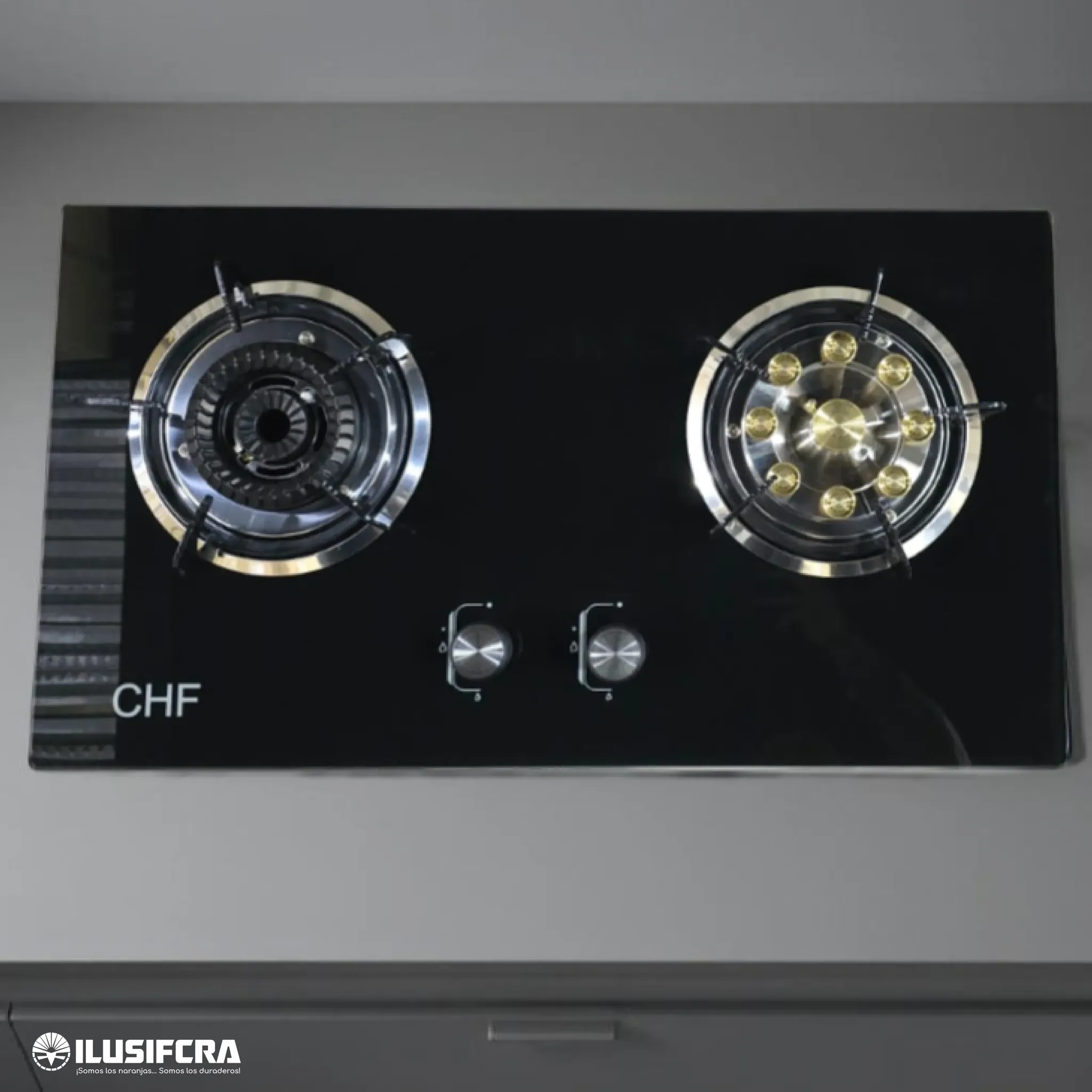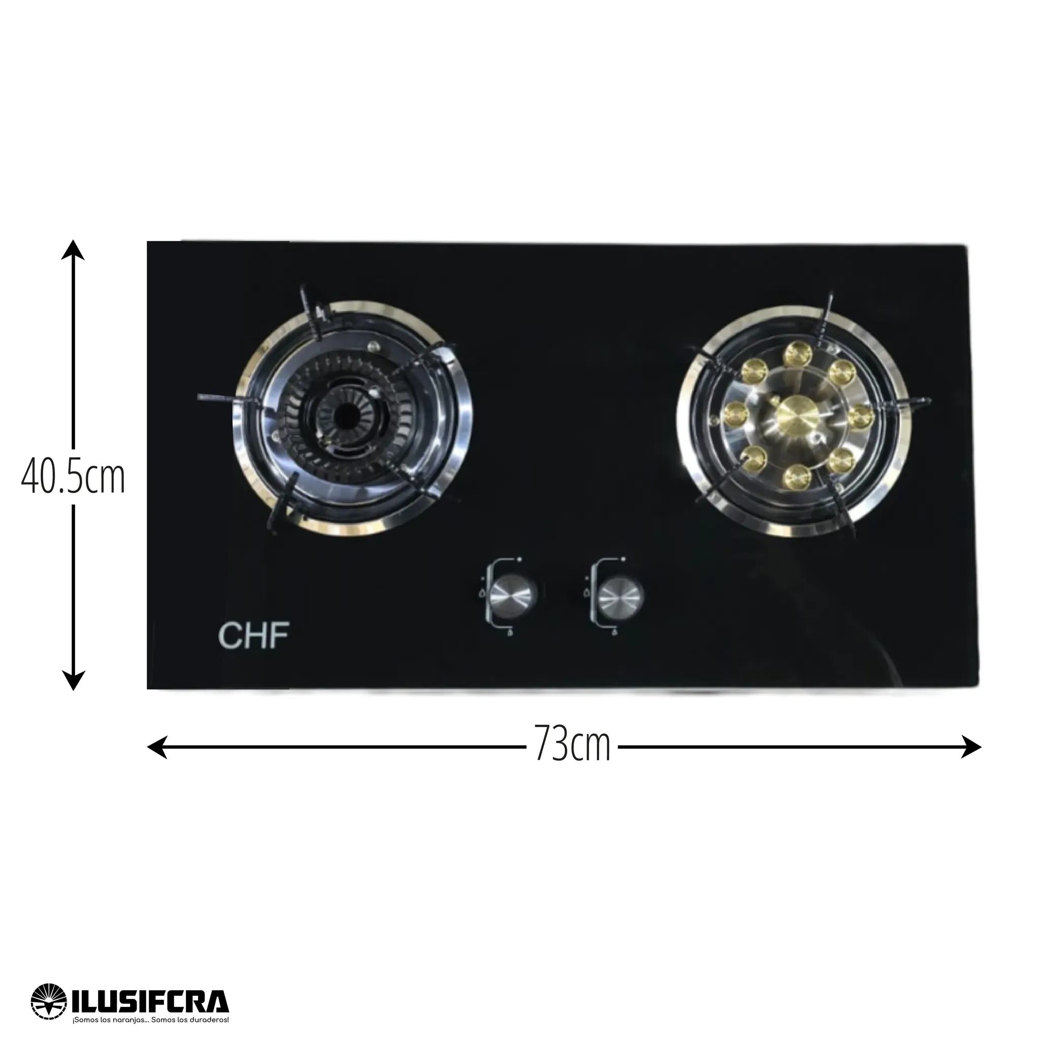 COCINA DE GAS 2 QUEMADORES VITROCERAMICA EXTRA FLAMA CHF 0014