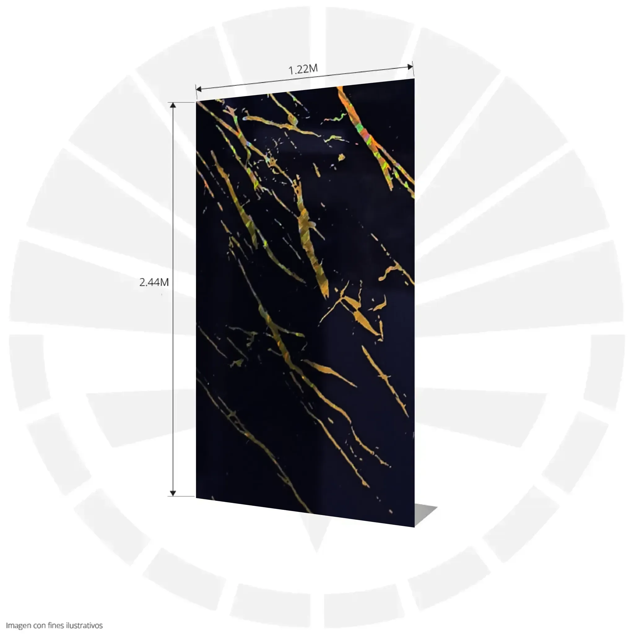 LÁMINA PVC - PANEL UV ESTILO MÁRMOL NEGRO ESCALA VETA DORADA 1.22M X 2.44M / 3MM KL8107