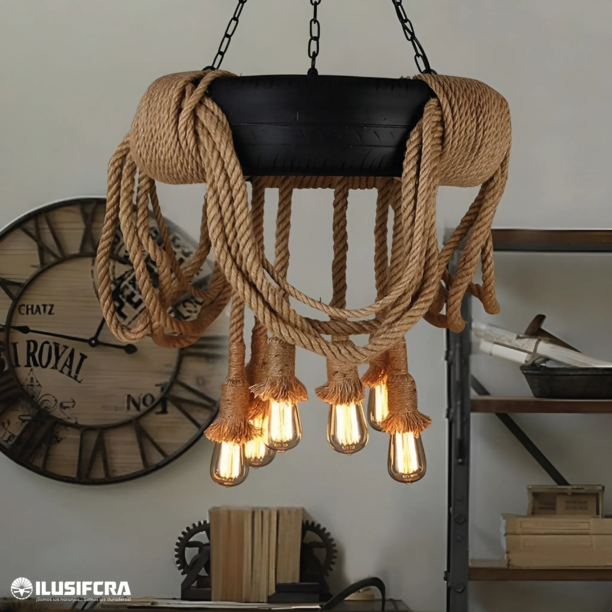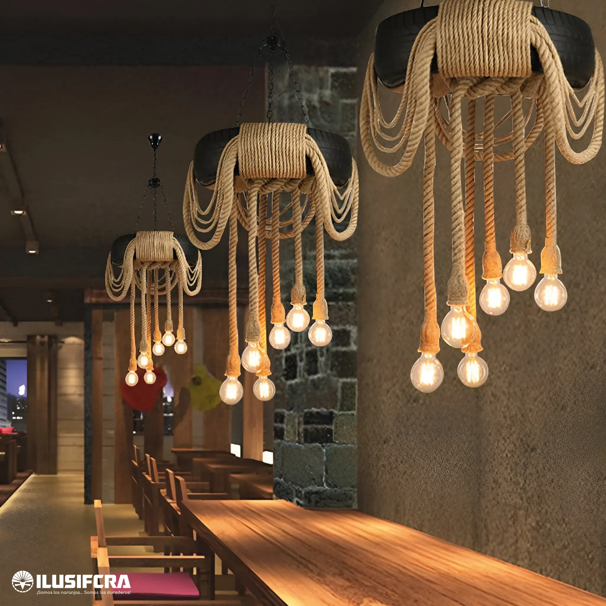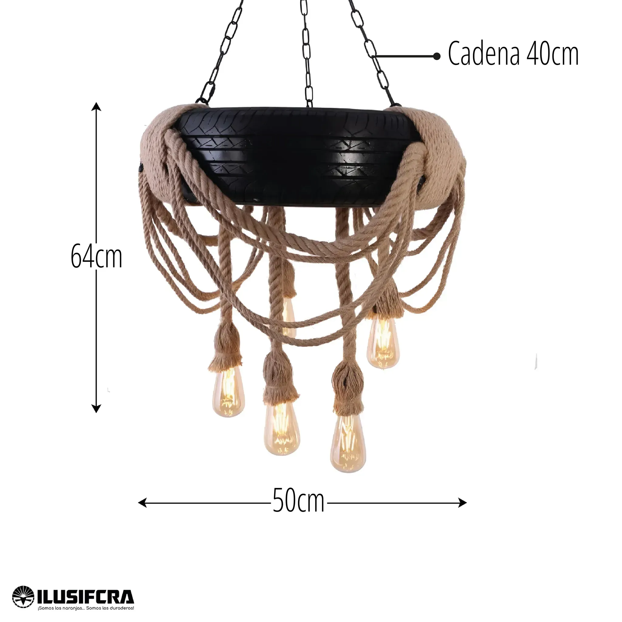 LÁMPARA COLGAR A110-4 LLANTA RÚSTICA 4 SOCKETS