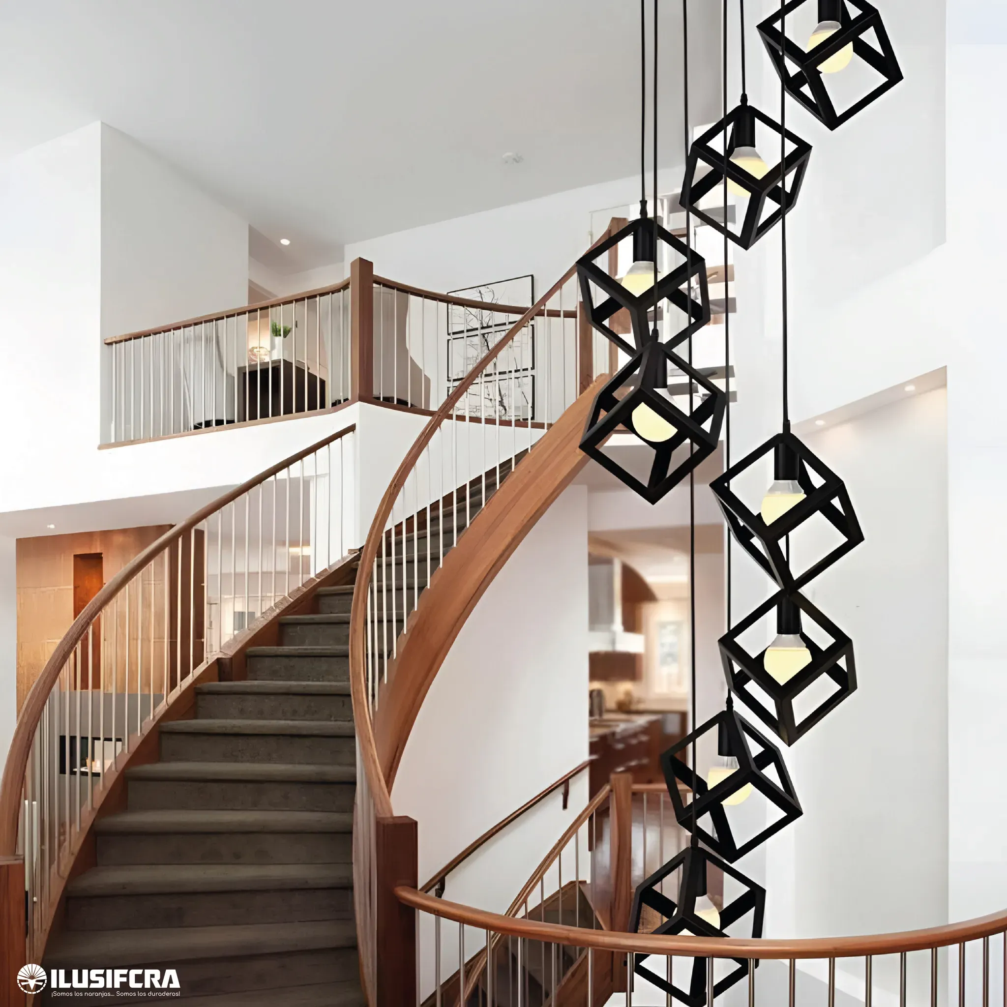 Con su estructura geométrica de múltiples cubos, crea un efecto visual único que realza cualquier espacio. Perfecta para comedores, salas o recibidores