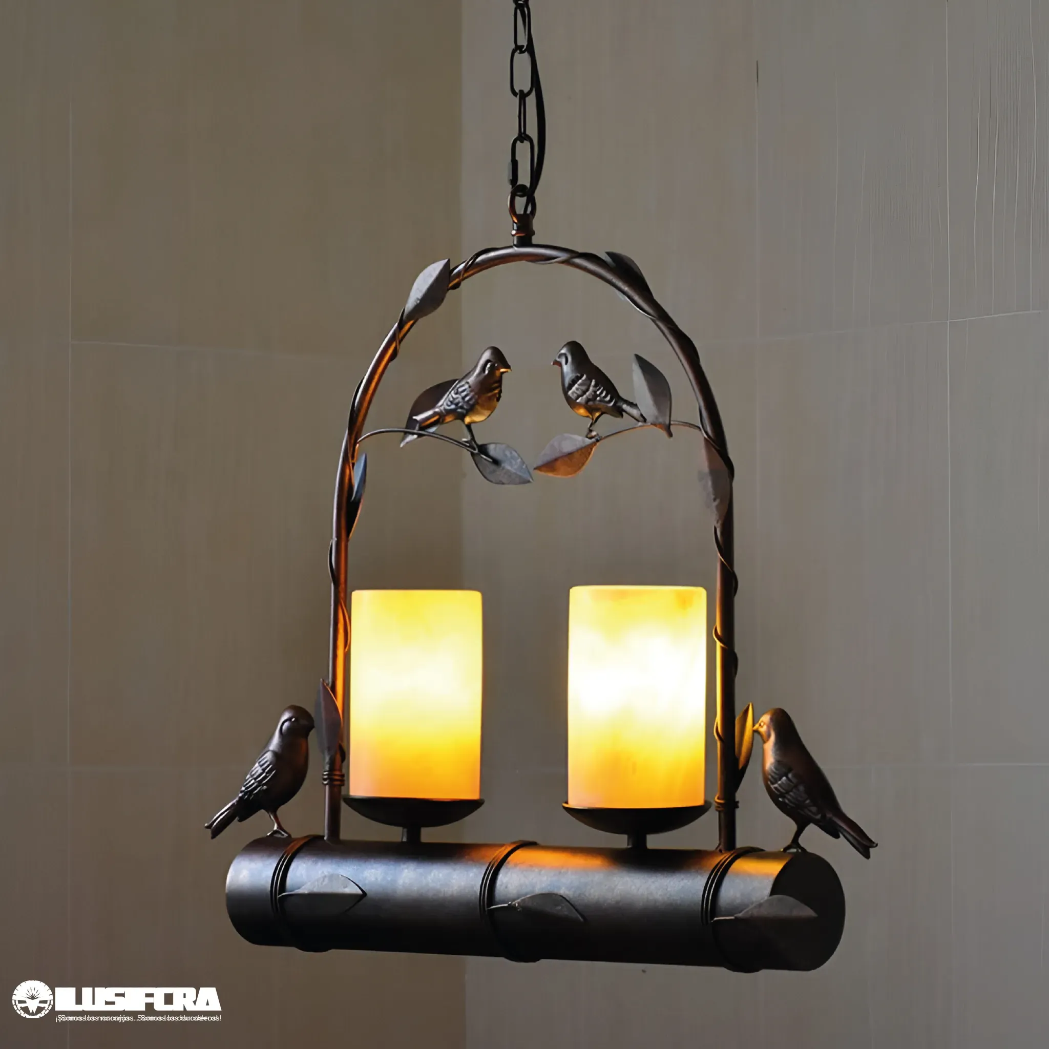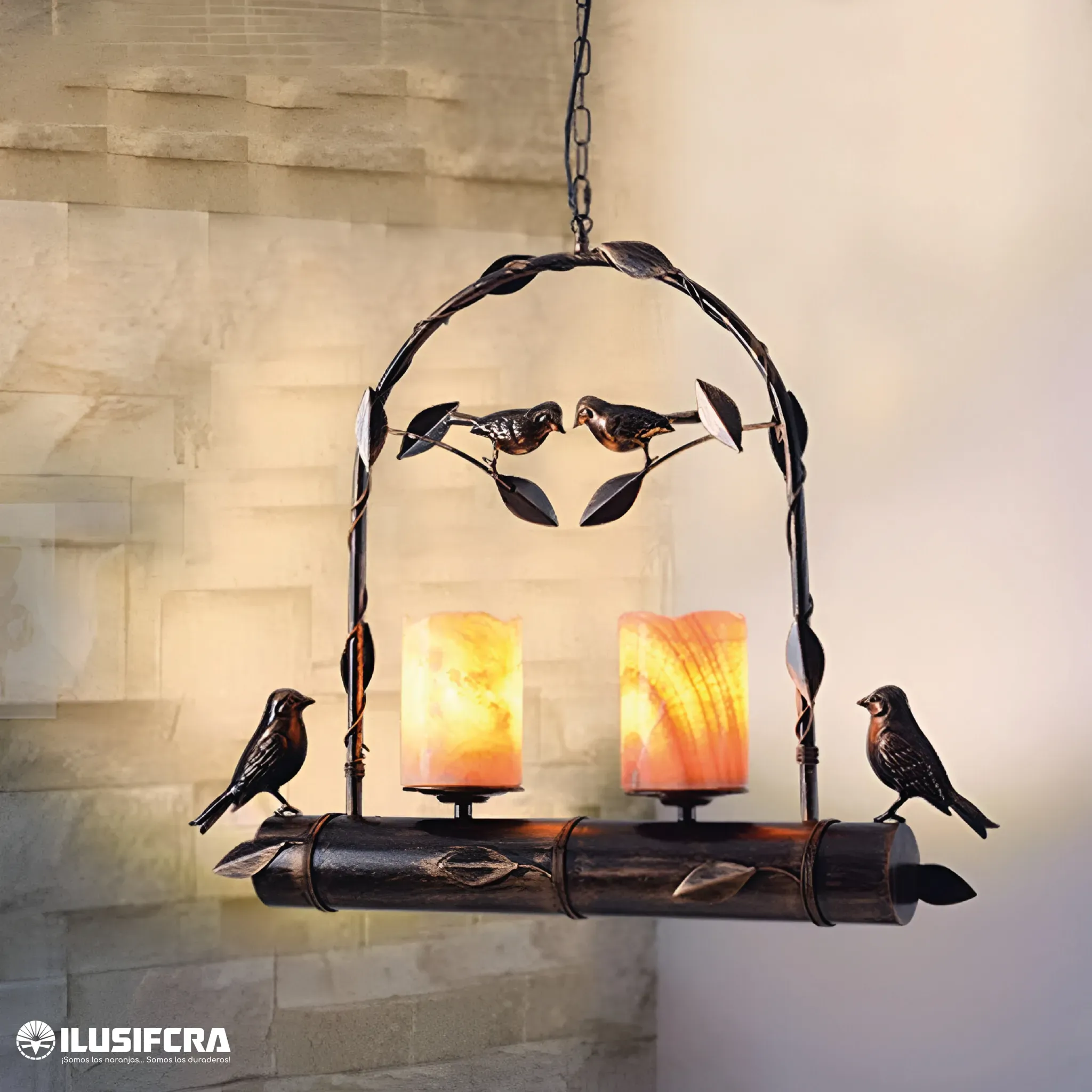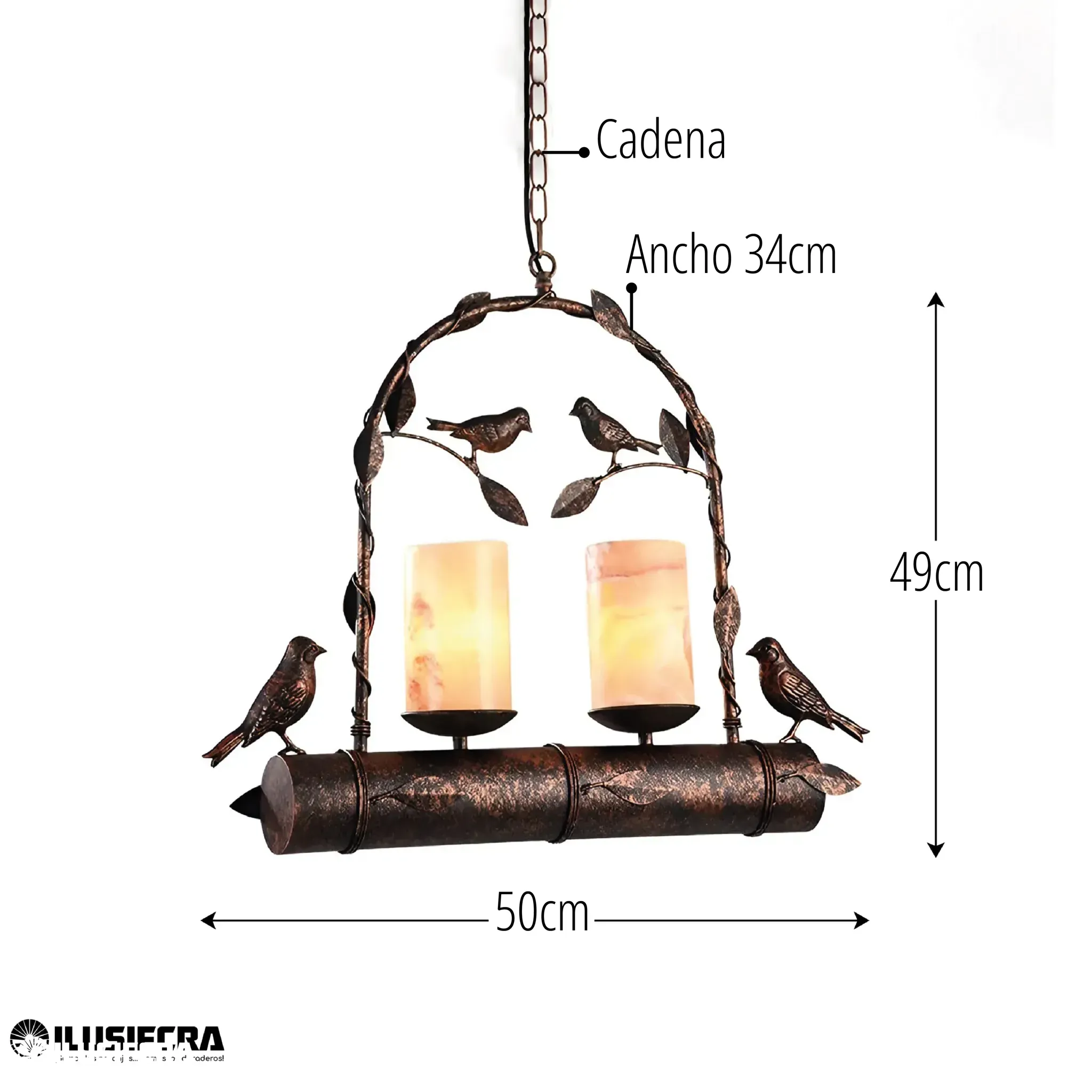 LAMPARA COLGAR CD-022 RUSTICA 4 PAJARITOS 2 CANDELABROS