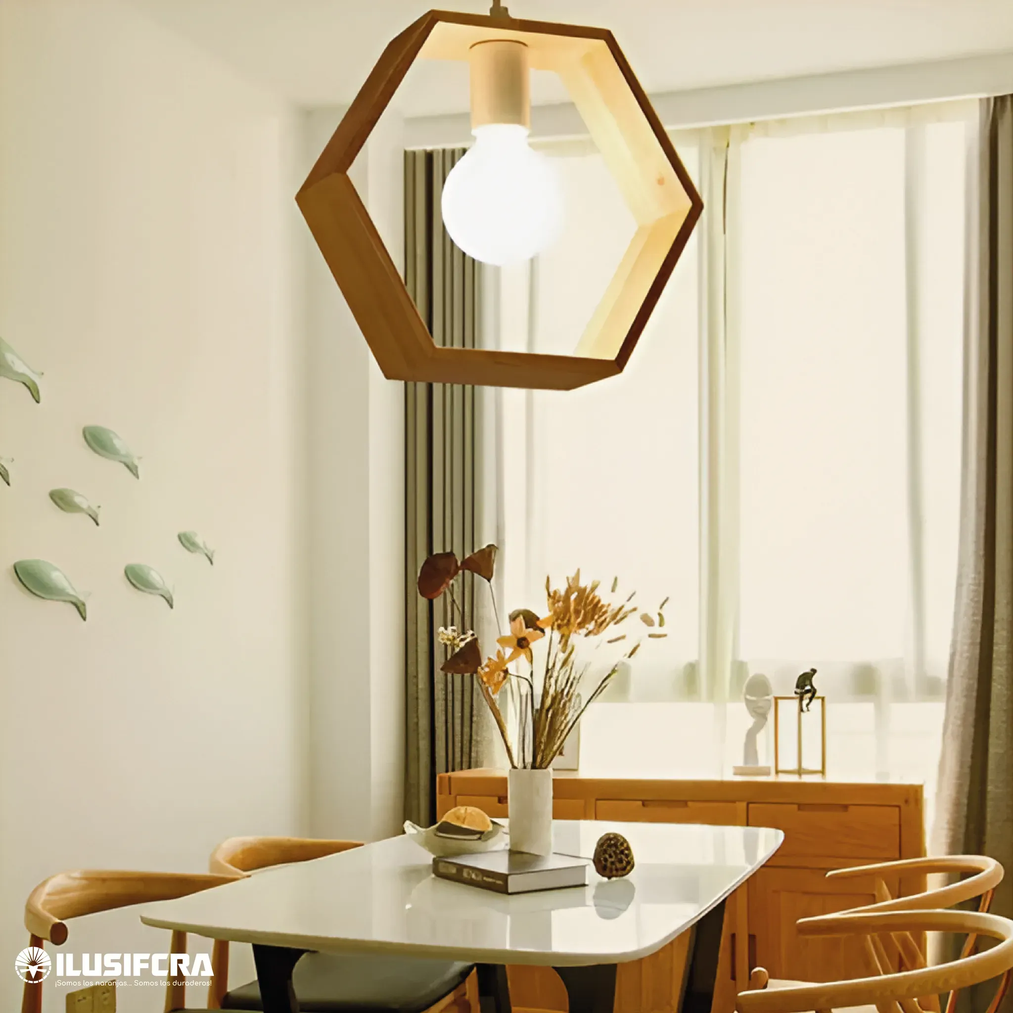 LAMPARA COLGAR ESTRELLA MADERA 0379