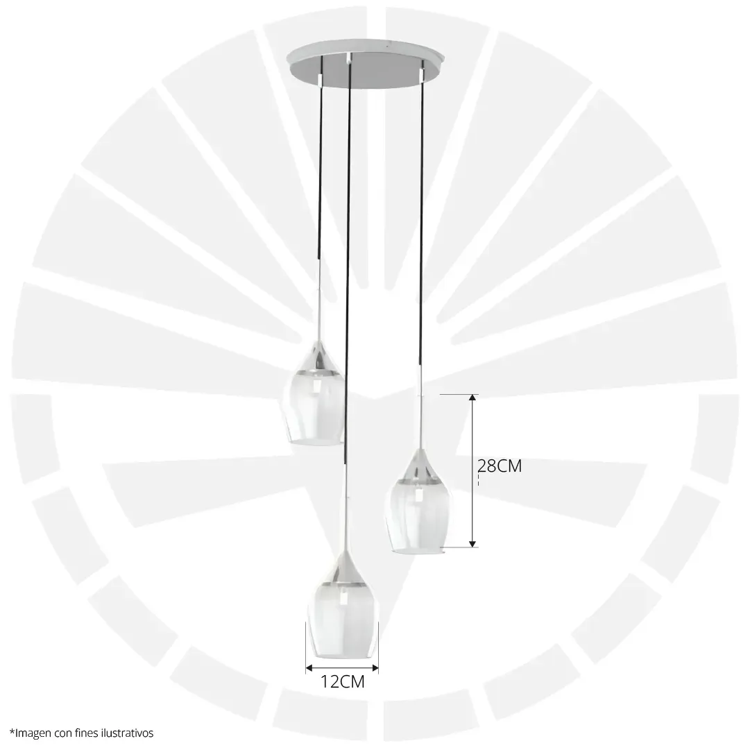 LÁMPARA DE COLGAR MINIMALISTA 3 COPAS DE VIDRIO 2805-3B