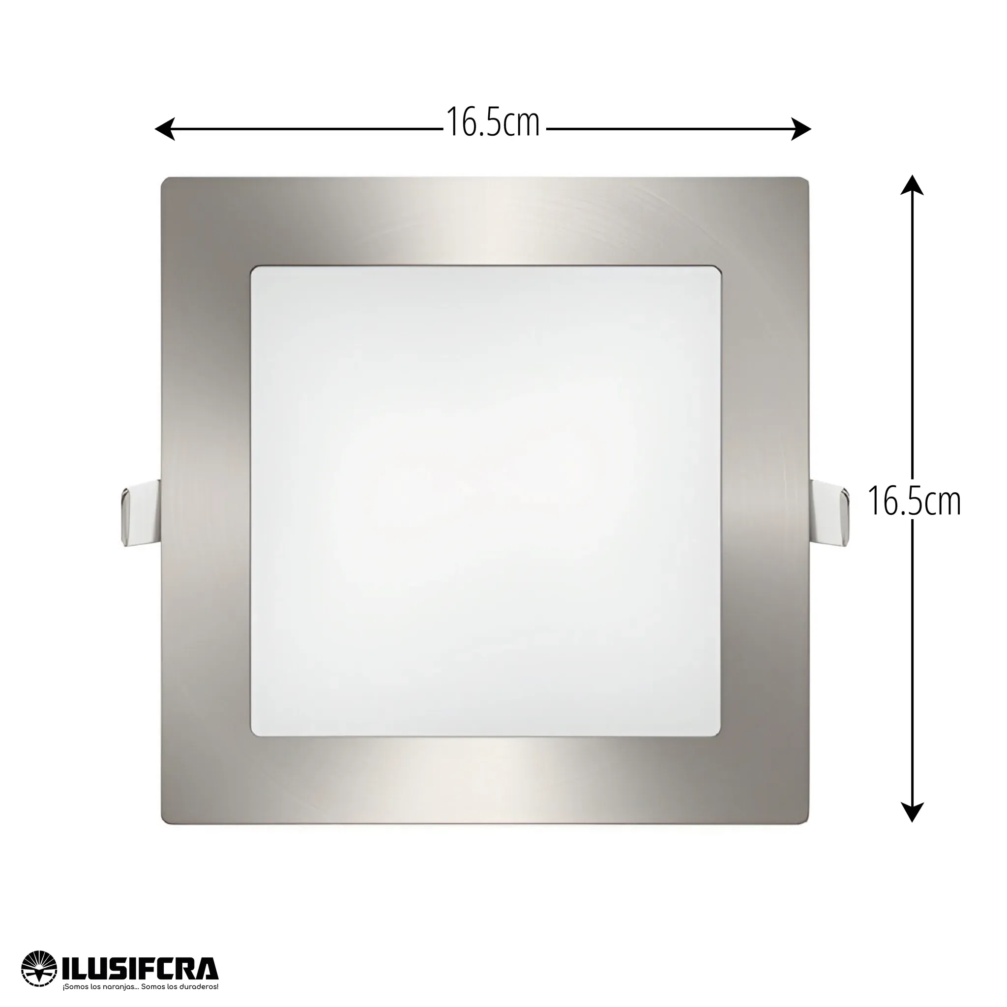 PANEL LED EMPOTRAR 12W CUADRADO 6500K BORDE PLATEADO ILUSIFCRA SL0038P