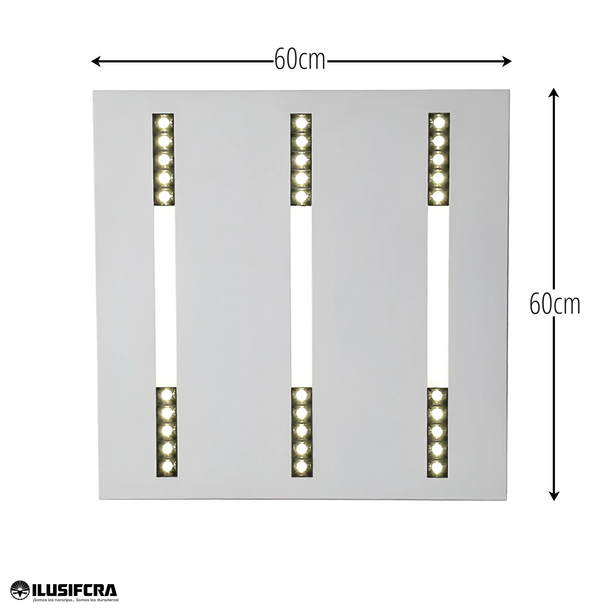 Diseño compacto 60x60 cm: Tamaño estándar para instalaciones en cielorrasos modulares o espacios reducidos.
