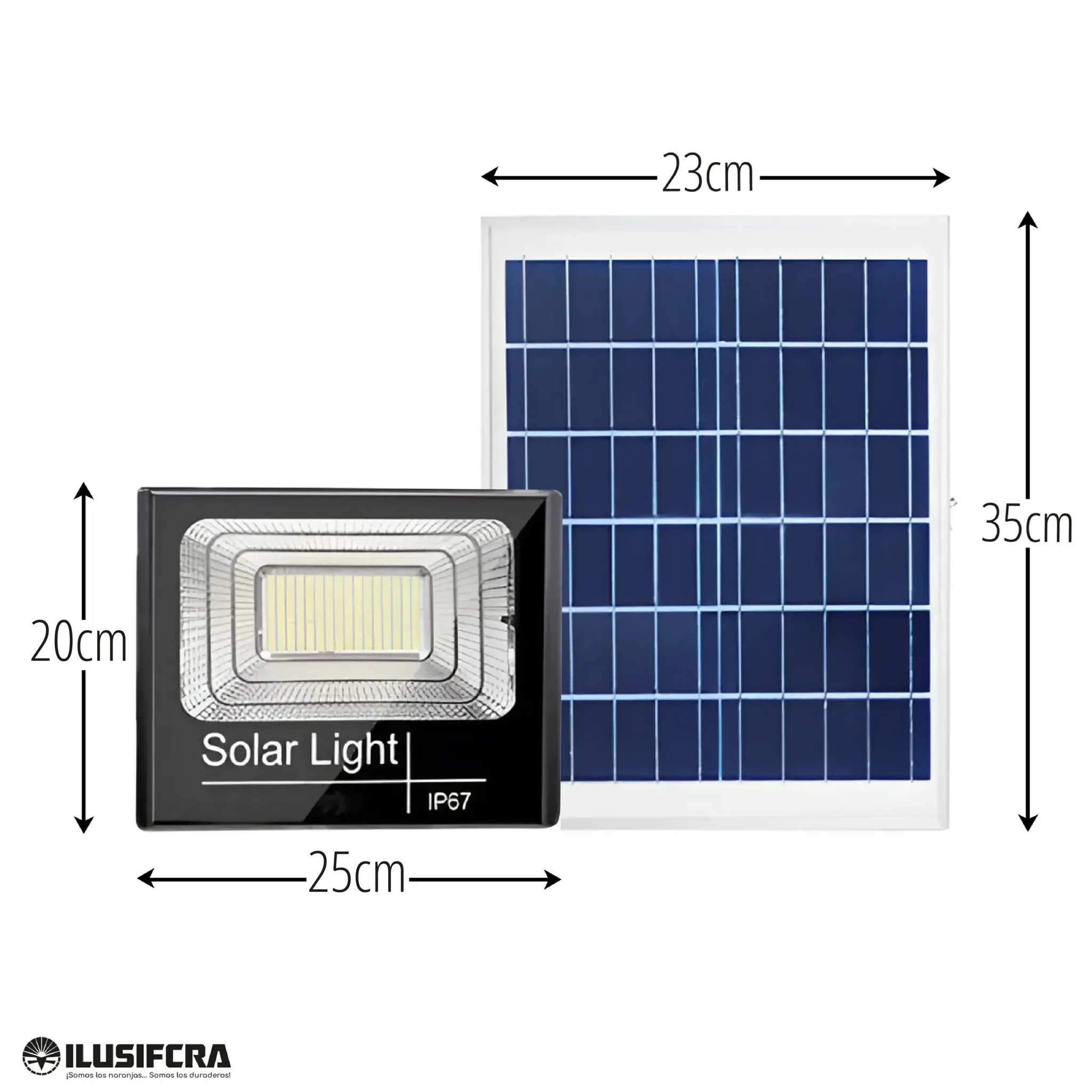 El reflector LED proporciona la luz, mientras que el panel solar proporciona la energía.